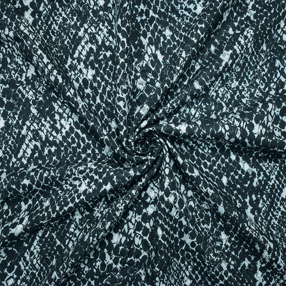 -100% Rayon twill woven fabric printed with a reptile-skin inspired pattern