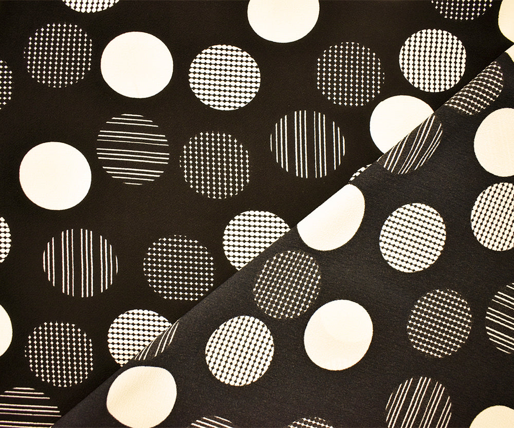 -Black-Ivory Poly Circle Abstract Printed Pebble Crepe Woven Fabric