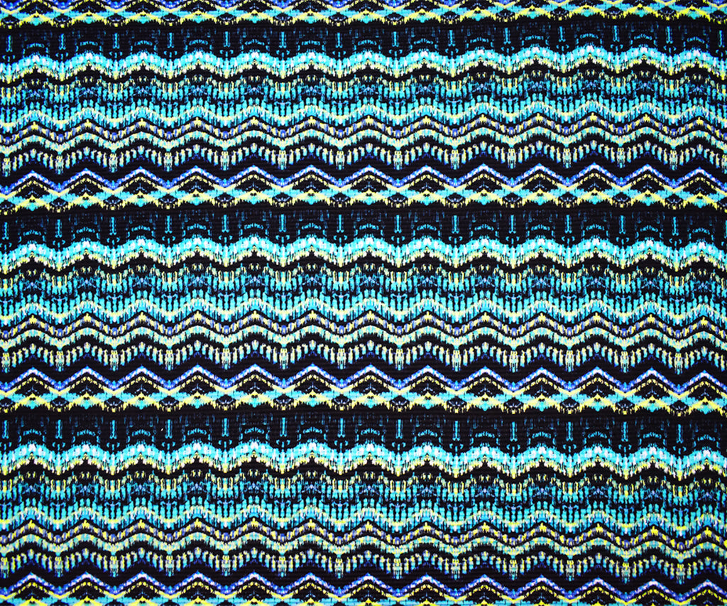 -Black-Multi Poly Stretch Spandex Abstract Chevron Print Pleated Jersey Knit Fabric