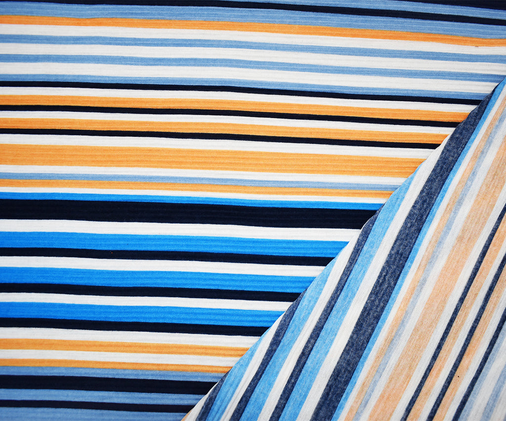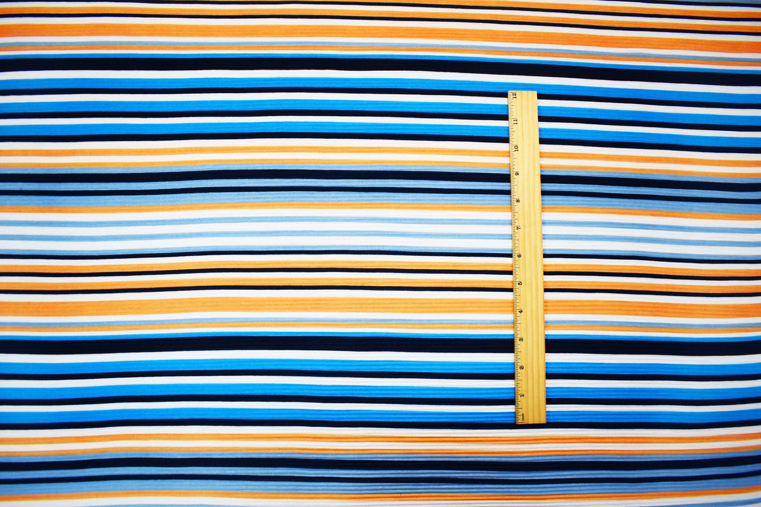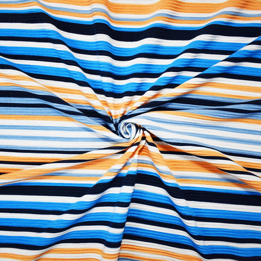 Black-Multi Poly Stretch Spandex Stripe Print Pleated Jersey Knit Fabric