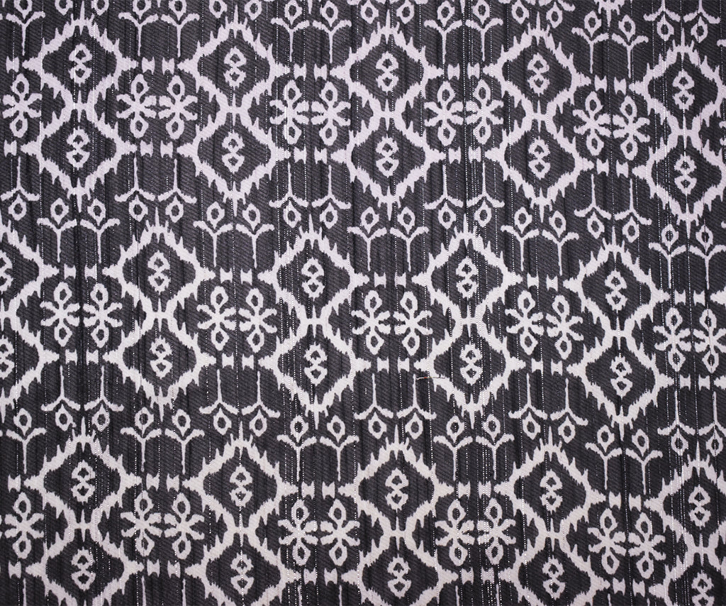 Black-Purple Poly Tile Abstract Ikat Printed Silver Stripe Chiffon Fabric