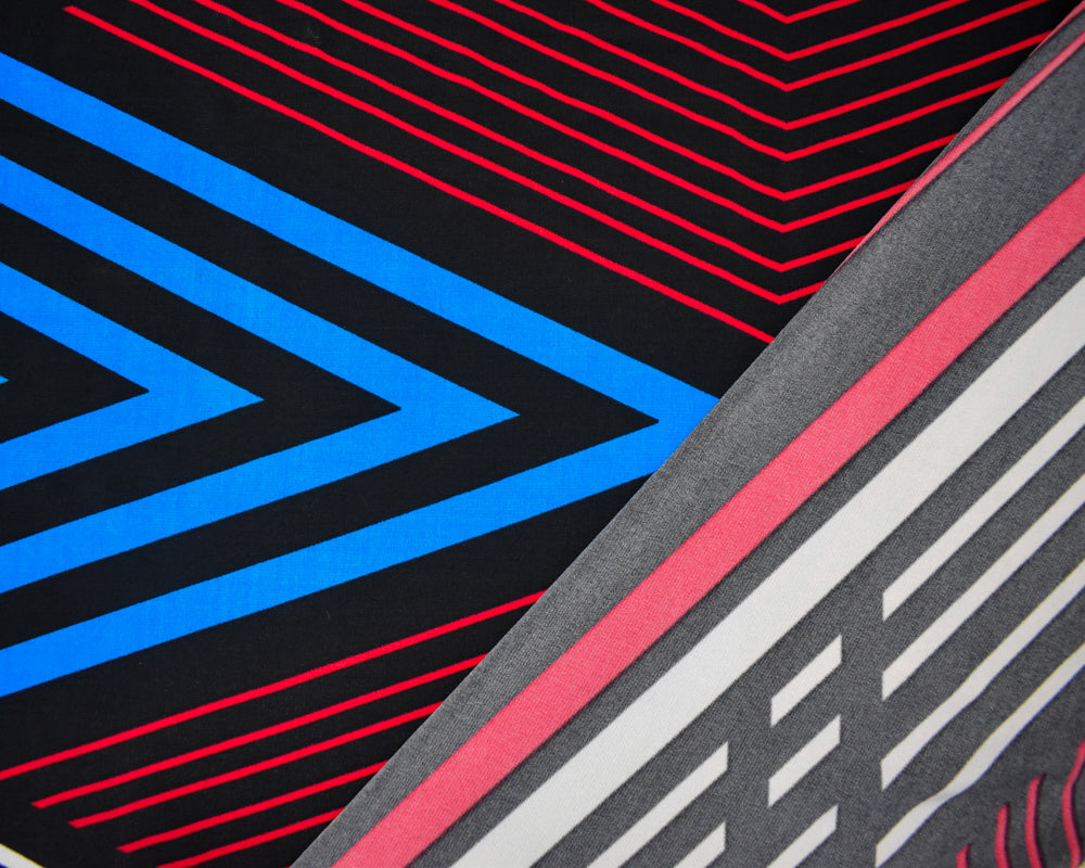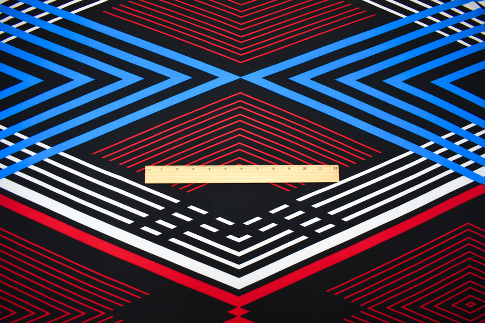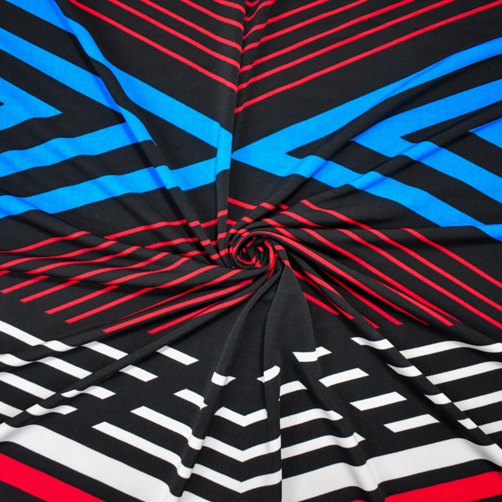 Black-Red-Multi Poly Stretch Spandex Geometry Printed ITY Knit Fabric