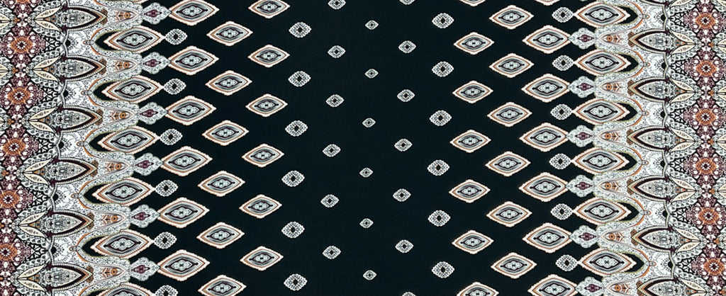-Black-White-Multi Poly Diamond Paisely Border Printed Georgette Woven Fabric
