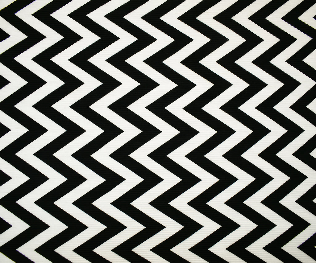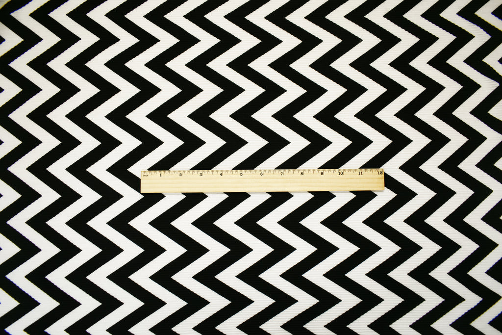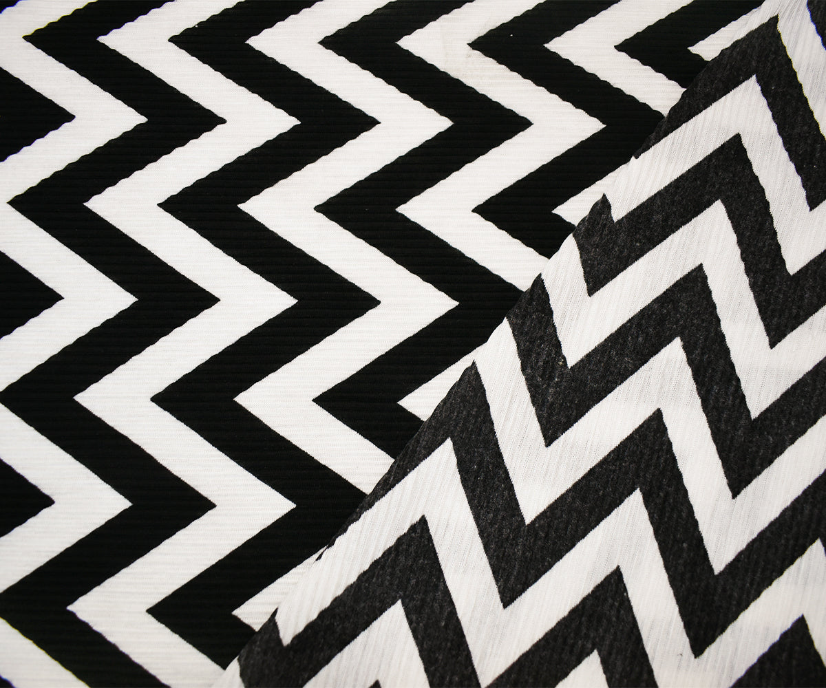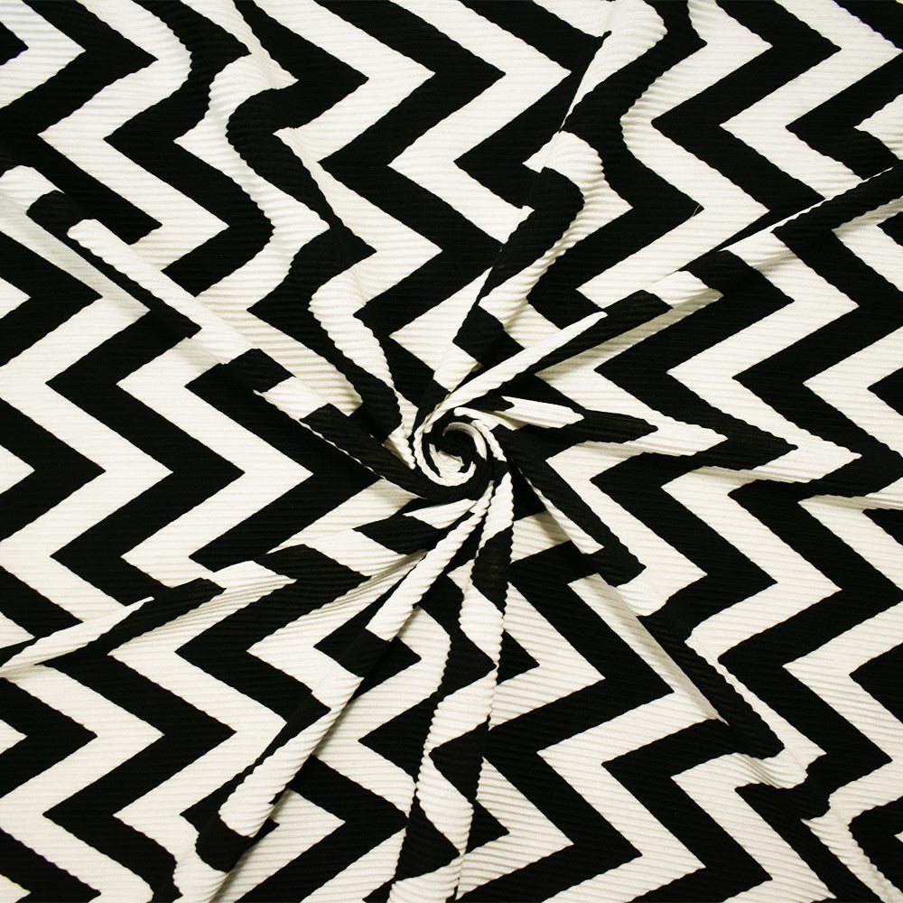 Black-White Poly Stretch Spandex Chevron Print Pleat Interlock Knit Fabric