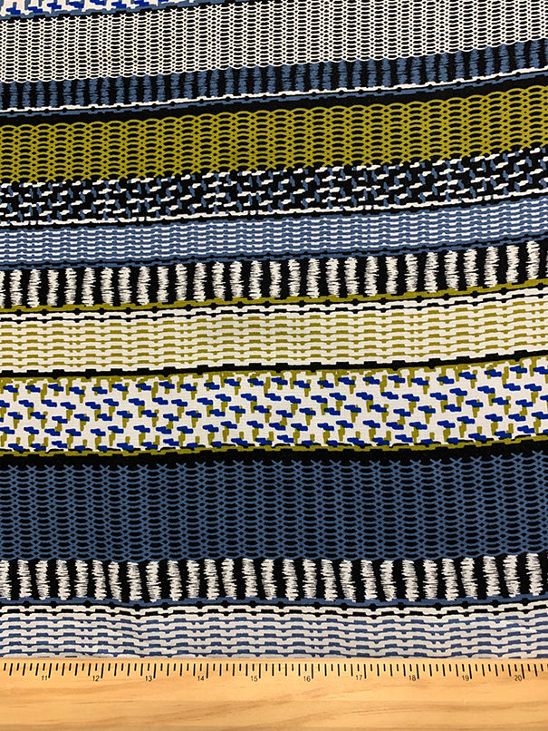 Blue and Gold Multi Stripe Print Rayon Challis Fabric