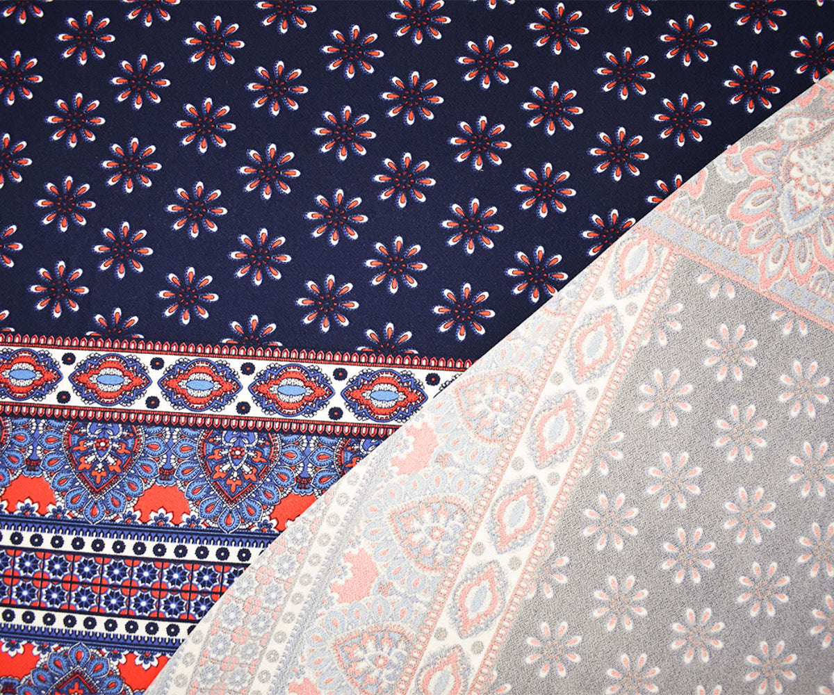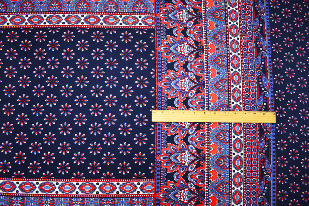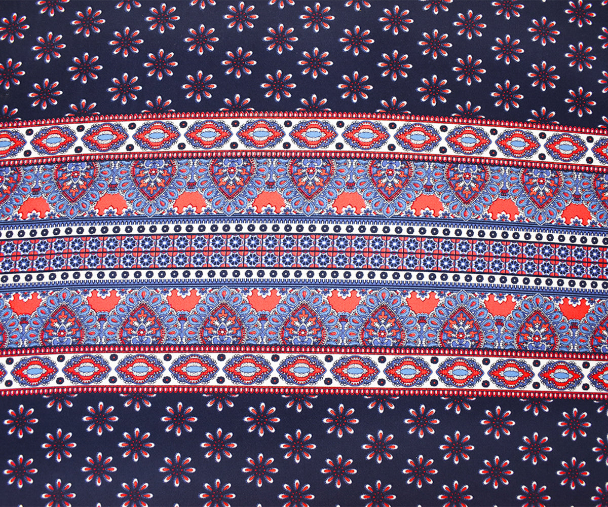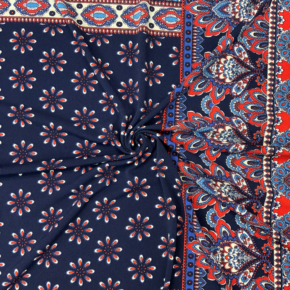 Blue-Multi Poly Stretch Spandex Multi Pattern Printed ITY Crepe Knit Fabric