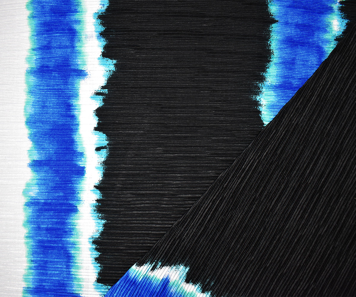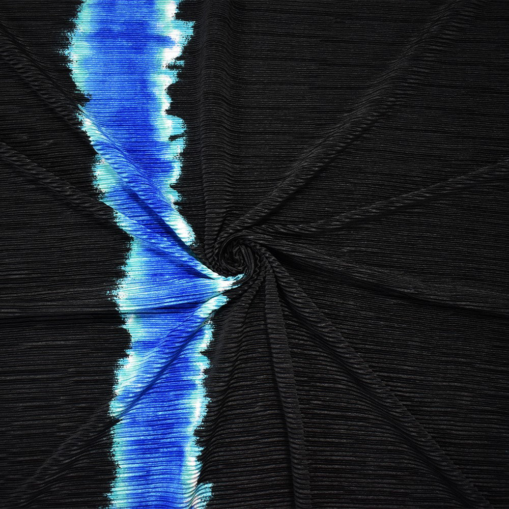 Blue-Multi Poly Stretch Spandex Tie Dye Print Pleated Interlock Knit Fabric
