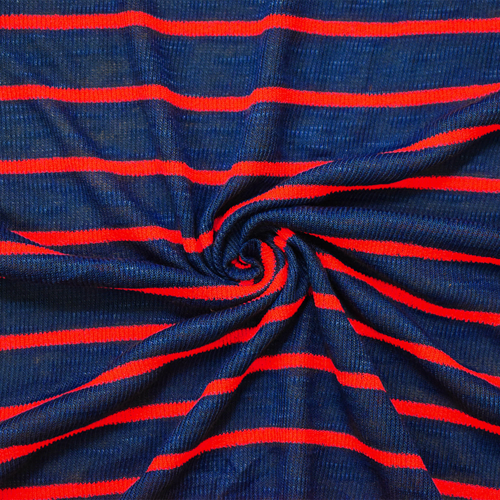 Blue-Red-Multi Cotton Semi-Sheer Slub Striped 1x1 Rib Knit Fabric