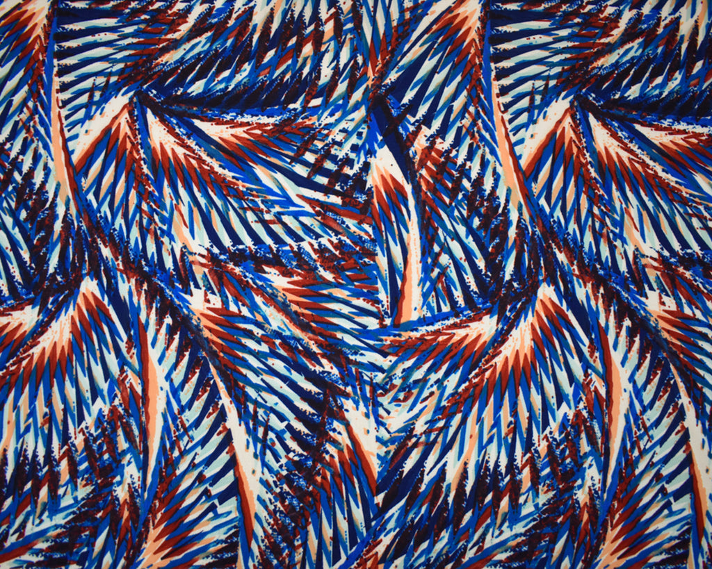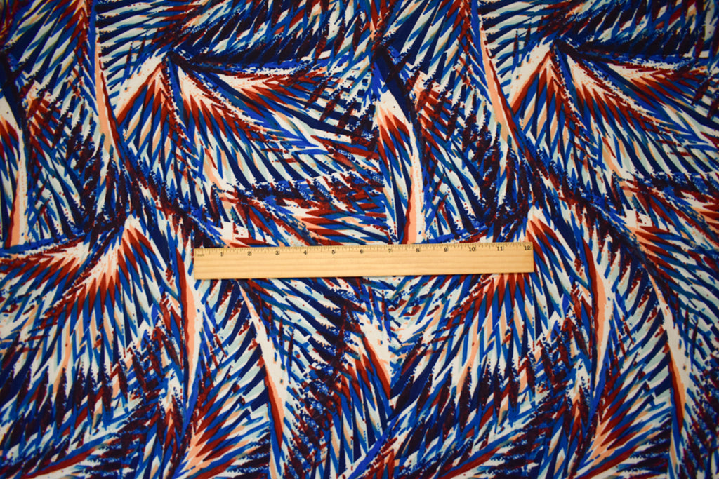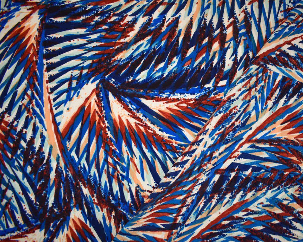 Blue-Red-Multi Poly Abstract Palm Tree Printed Pebble Crepe Woven Fabric