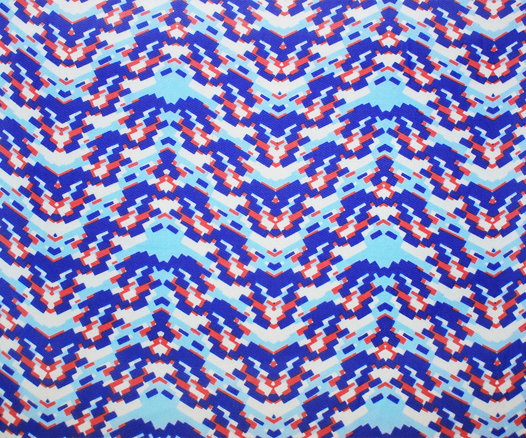 Blue-Red-White Poly Pixel Chevron Printed Chiffon Woven Fabric