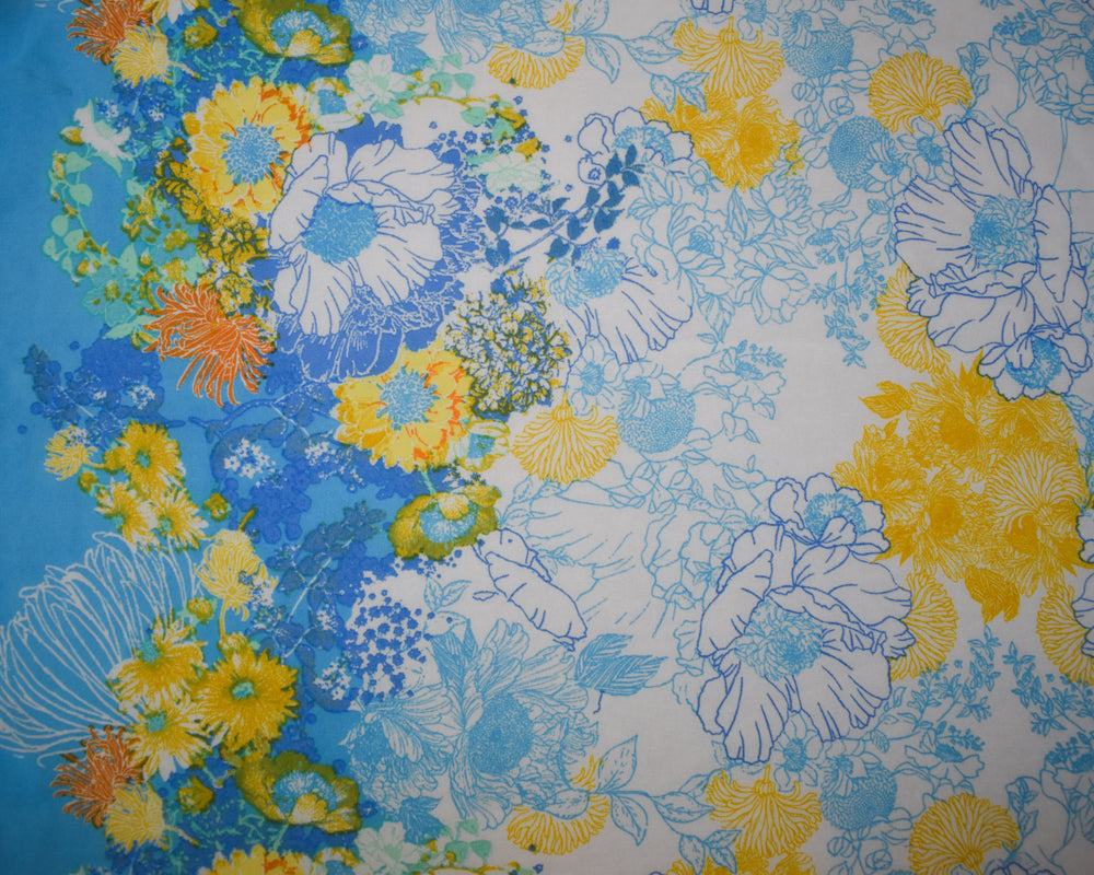 Blue-White-Multi Poly Floral Border Printer Chiffon Woven Fabric