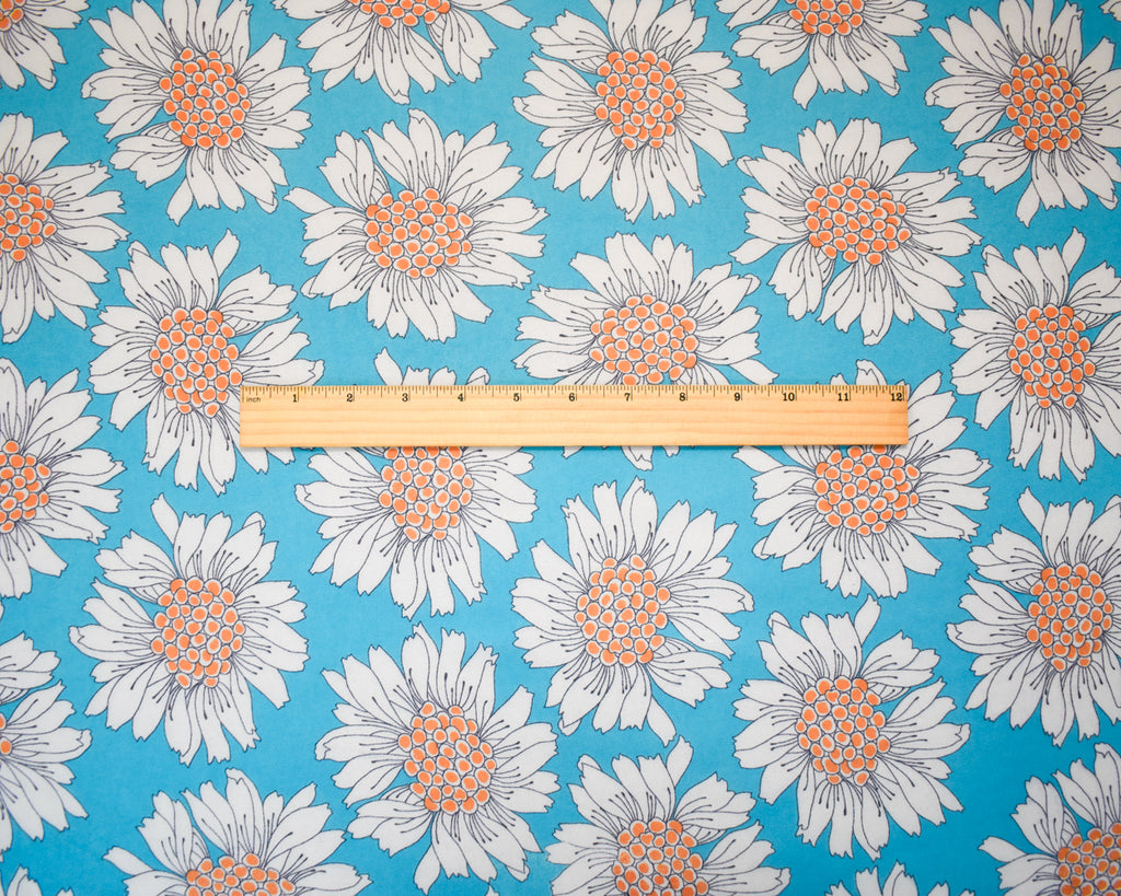-Blue-White-Multi Poly Floral Printed Chiffon Woven Fabric