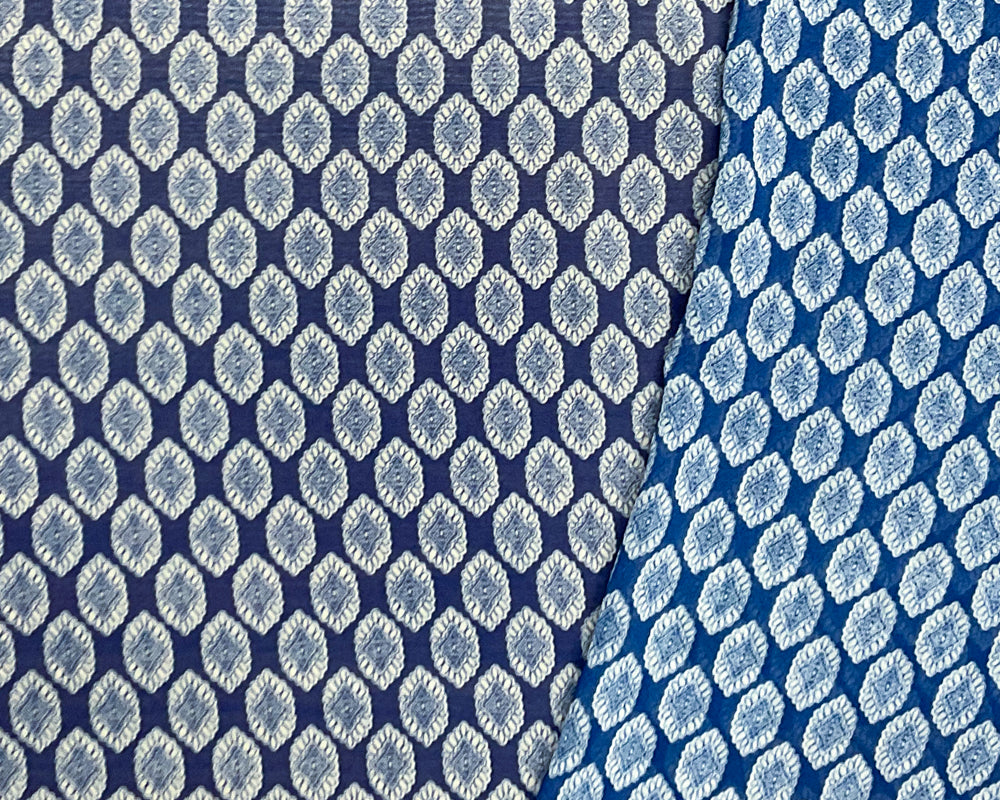 Blue-White Poly Moroccan Printed Silky Pebble Chiffon Woven Fabric