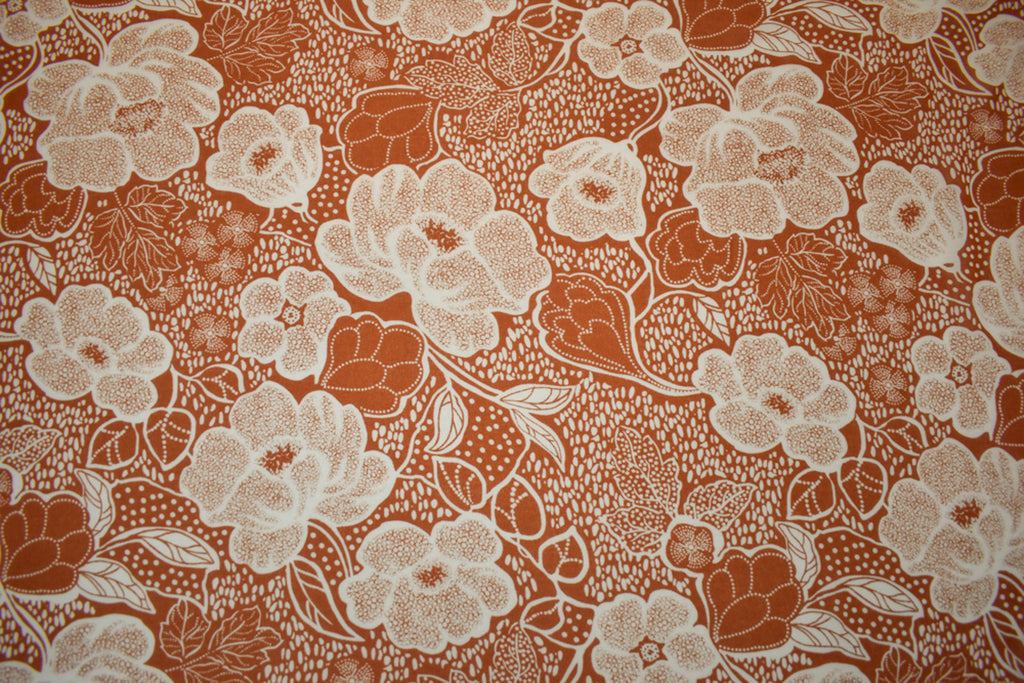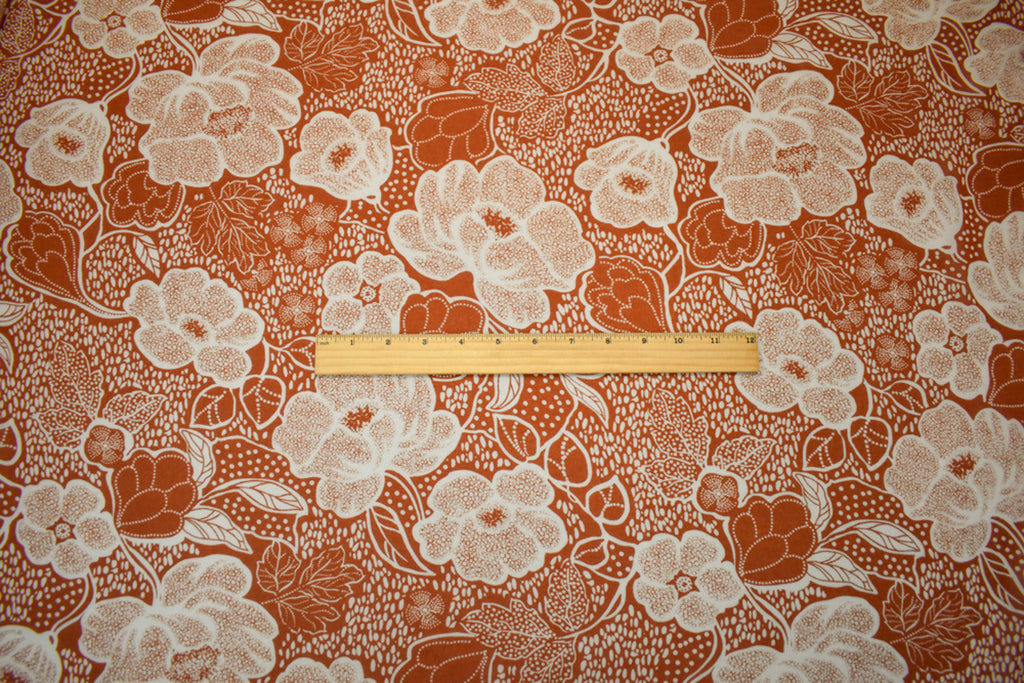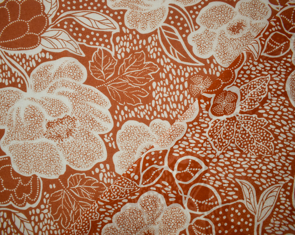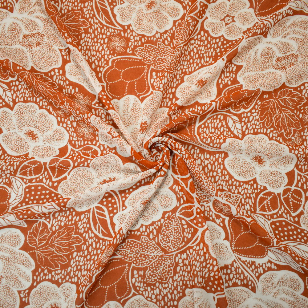 -Brown-White Poly Floral Printed Crepe Chiffon Woven Fabric