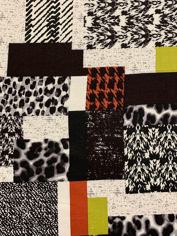 Copper and Olive Patchwork Print Rayon Challis Fabric