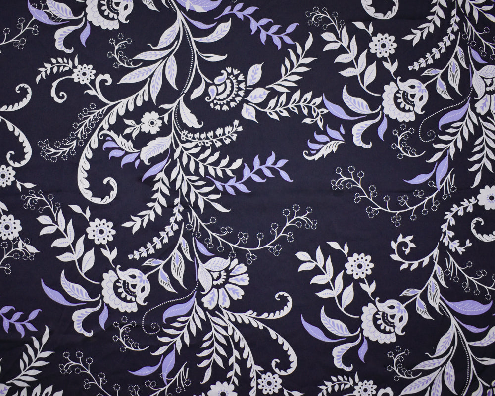 Deep Navy-Purple-Multi Polyester Floral Printed Charmeuse Woven Fabric