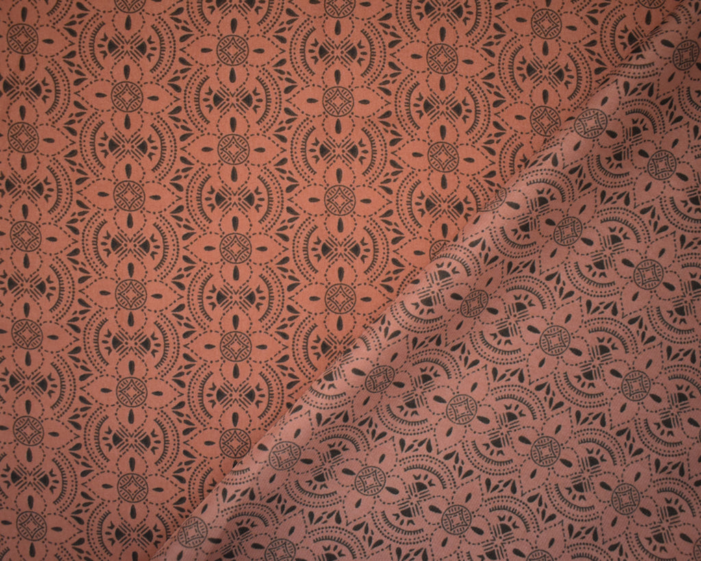Orange-Multi Poly Paisley Floral Border Printed Dull Charmeuse Woven Fabric
