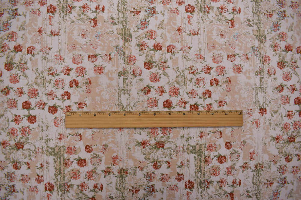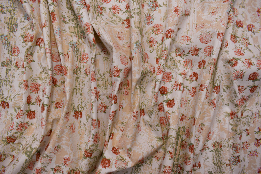 Peach-Multi Floral Texture Printed Stretch Twill Sateen Woven Fabric