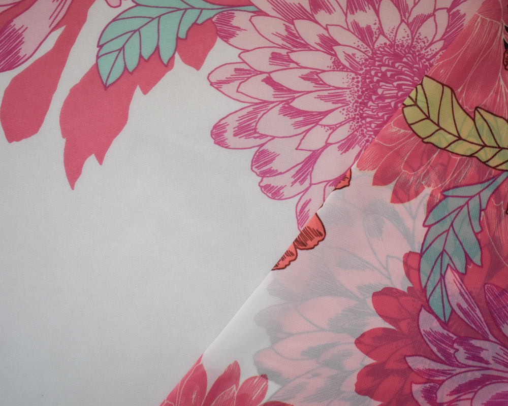 Pink-White-Multi Poly Floral Printed Chiffon Woven Fabric