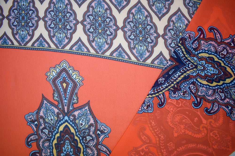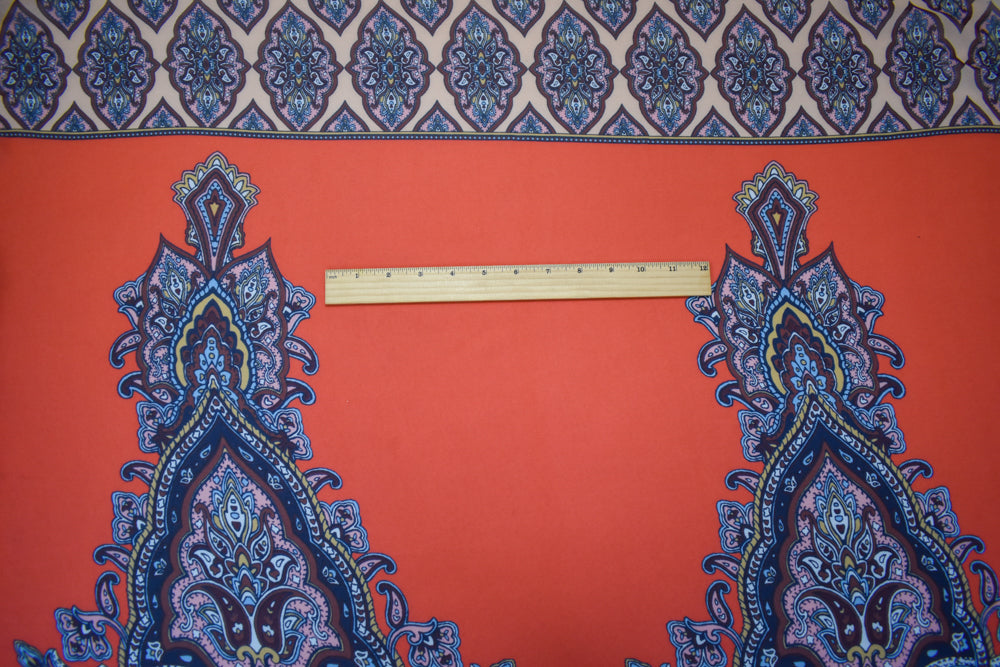Red-Brown-Multi Poly Baroque Border Printed Chiffon Woven Fabric
