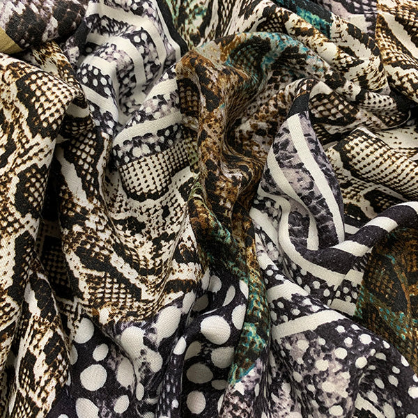 -Shades of Gray, Black, & White Multi Animal Patchwork Print Rayon Challis Fabric
