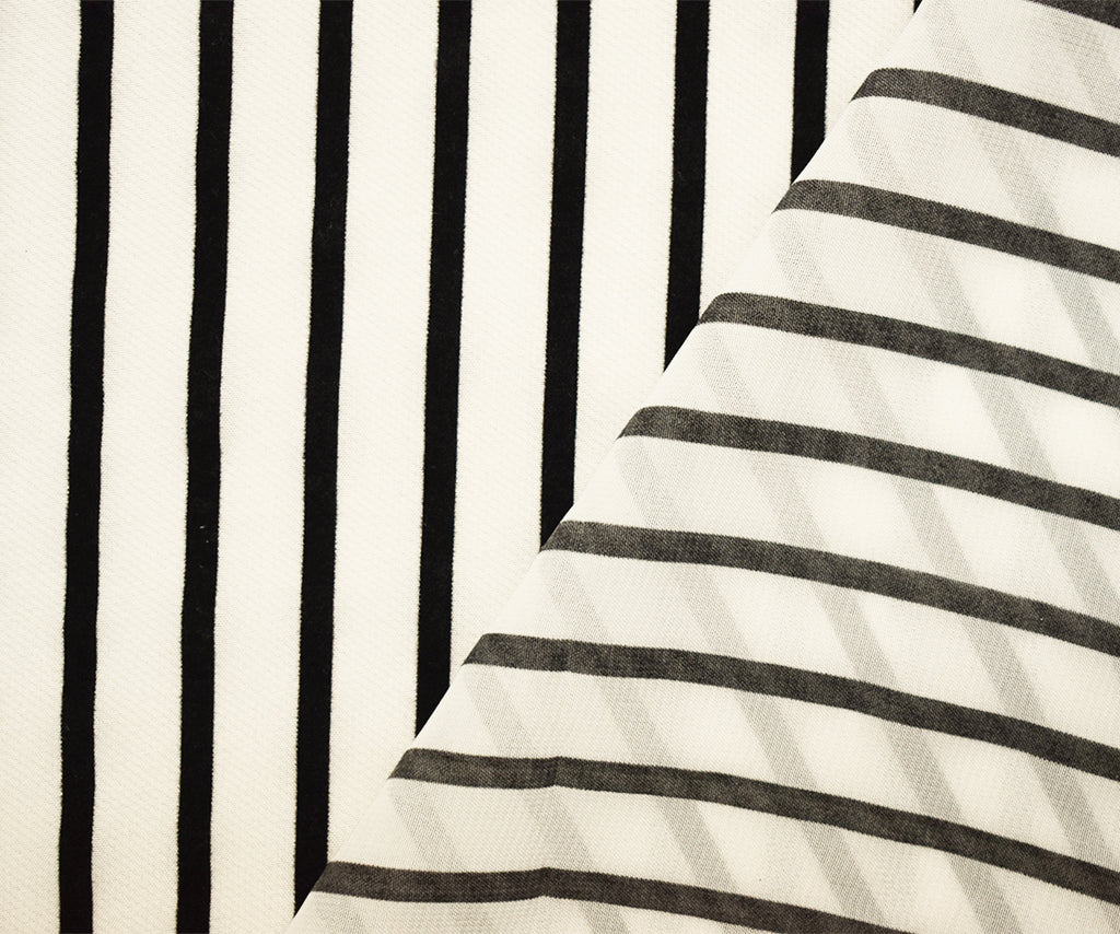 White-Black Nylon Stripe Velvet Flocked Chiffon Woven Fabric