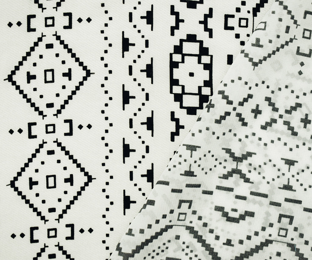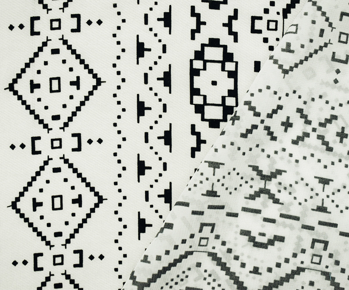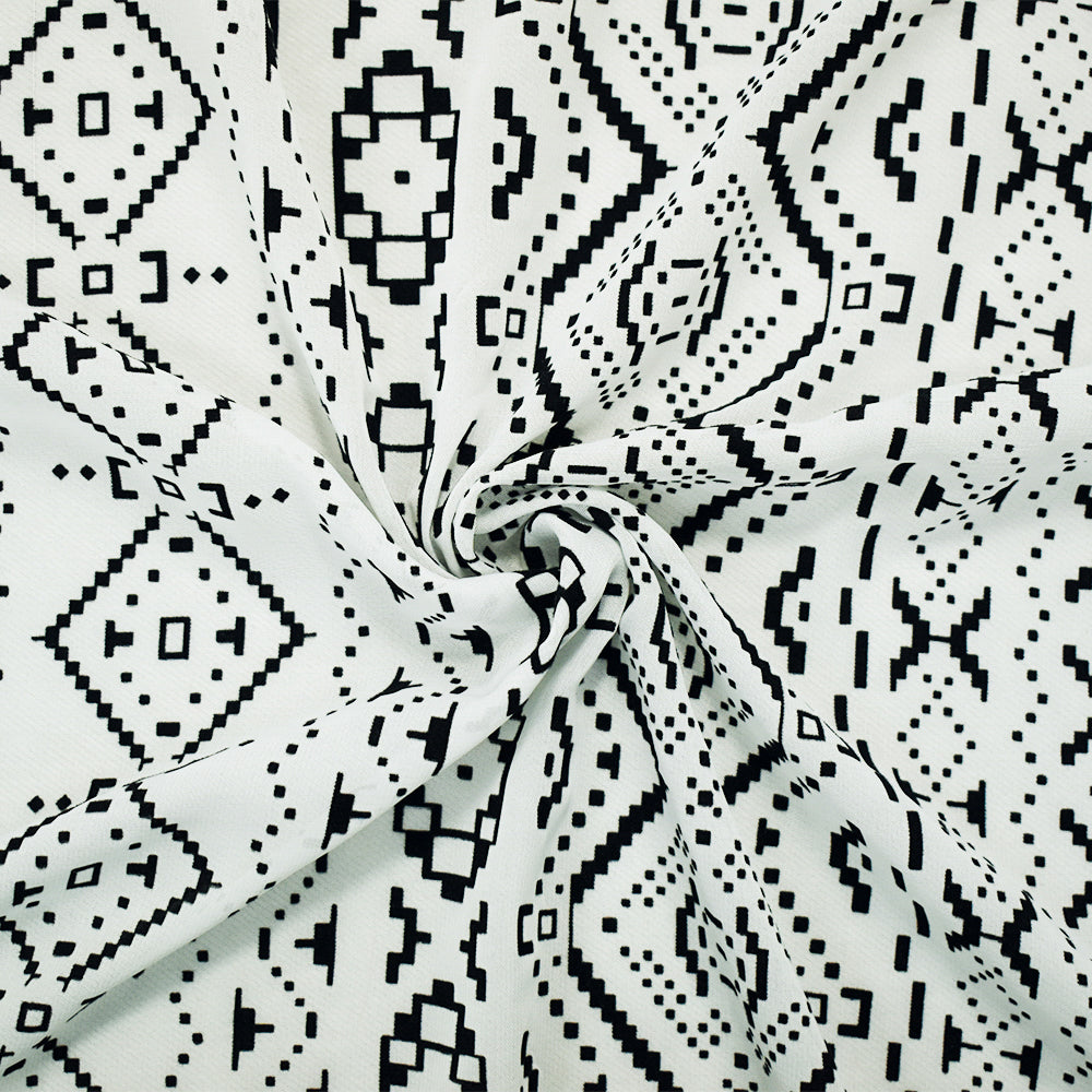 White-Black Polyester Aztec Velvet Flocked Printed Chiffon Woven Fabric
