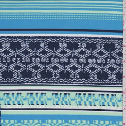 2 YD PC-Navy/Sky/Jade Deco Patchwork Activewear/Swimwear Fabric