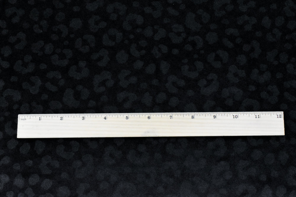 -Famous maker black on black cheetah pattern printed on a stretch nylon spandex tricot knit yoga swimwear fabric. Made in Brazil.