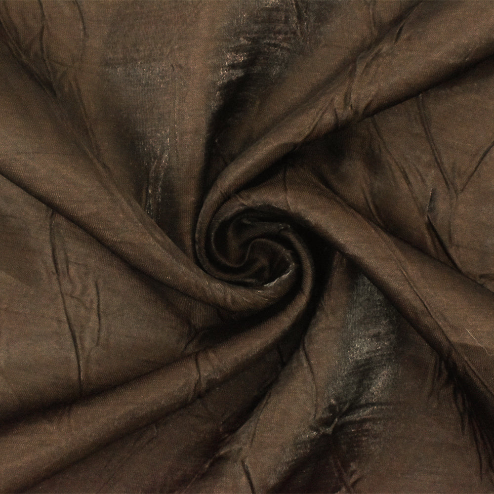 Chocolate Brown-Silver Iridescent Crinkle Nylon Taffeta Woven Fabric