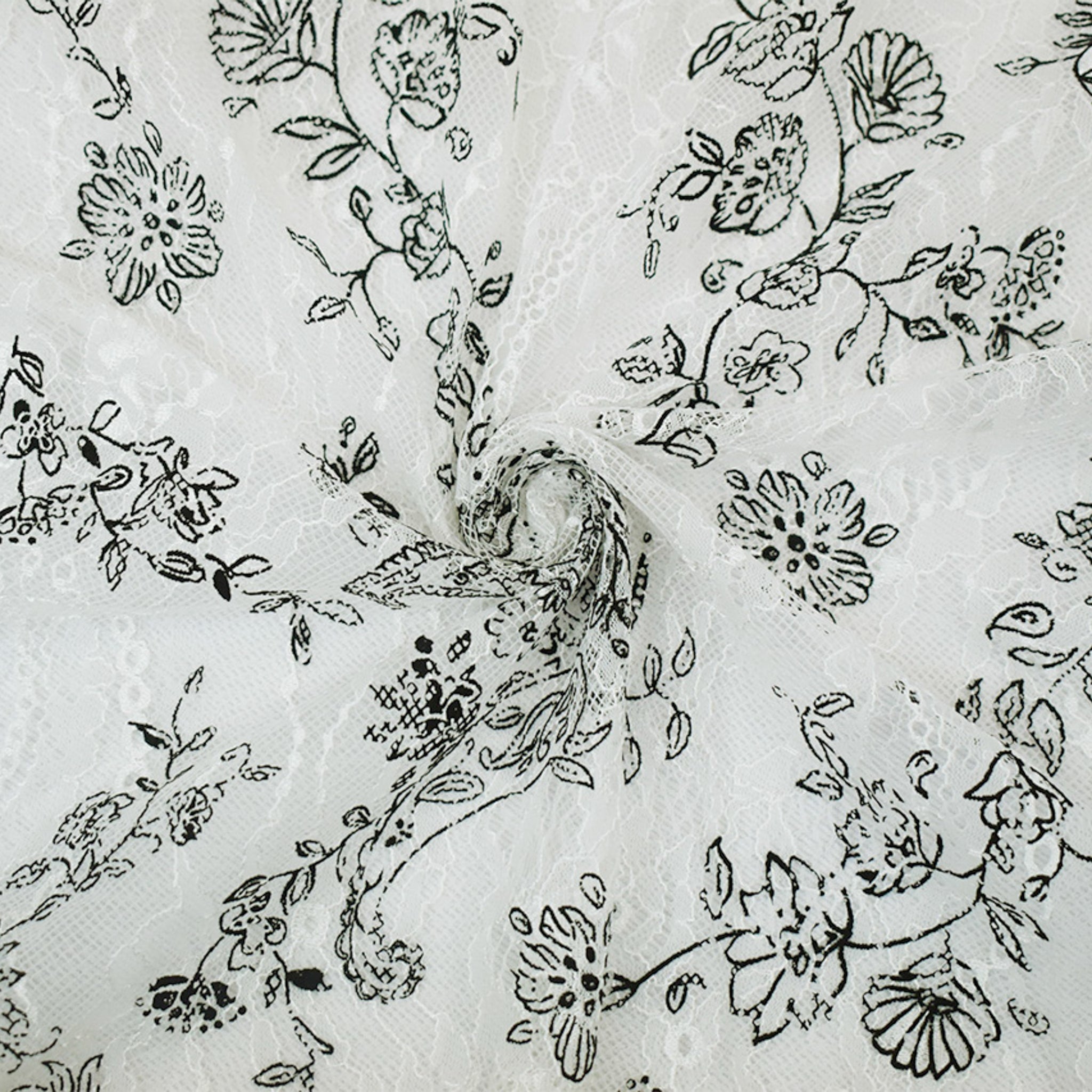 White-Black Nylon Floral Paisley Printed Lace Mesh Knit Fabric