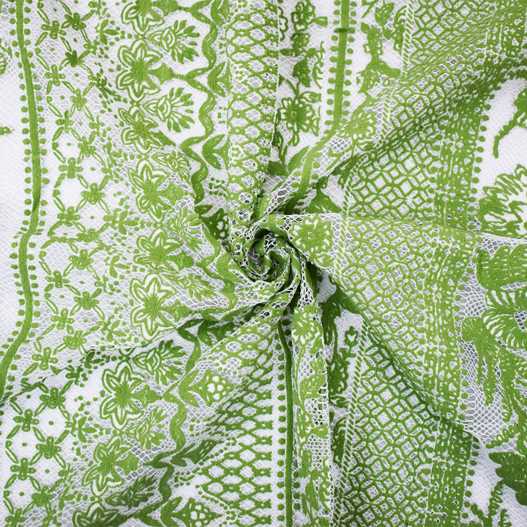 White-Green Nylon Cotton Floral Stripe Printed Mesh Tulle Knit Fabric