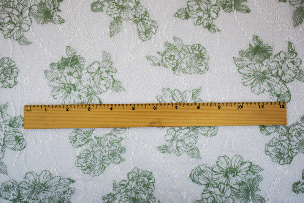White-Green Nylon Floral Printed Lace Mesh Knit Fabric