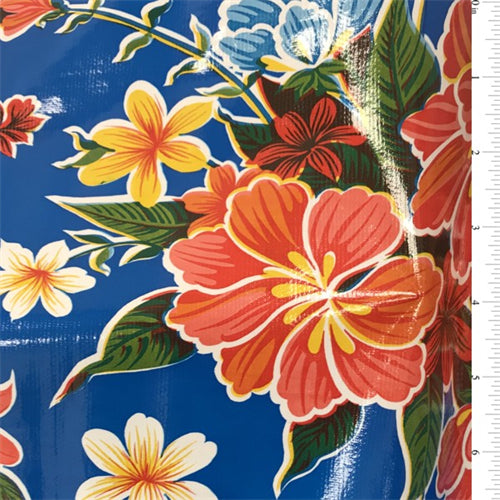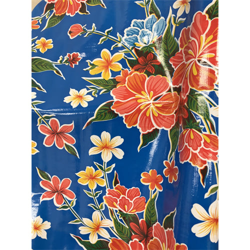 Blue Hibiscus Oilcloth Fabric - Reorderable
