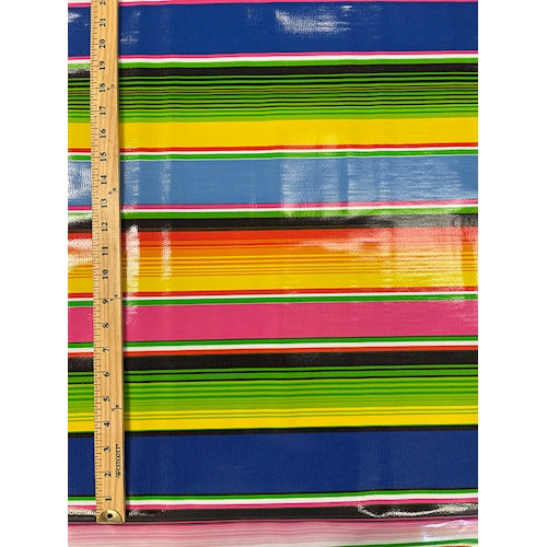 Green Multi Stripe Oilcloth Fabric - Reorderable