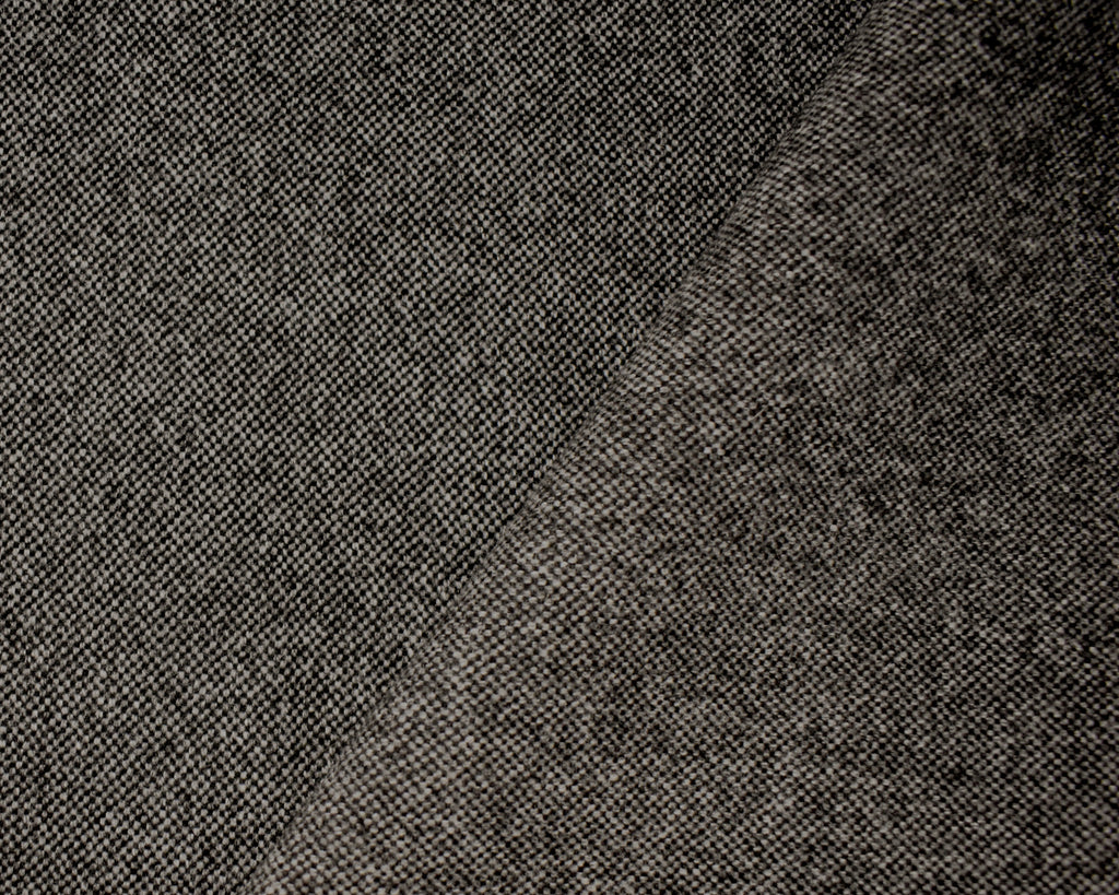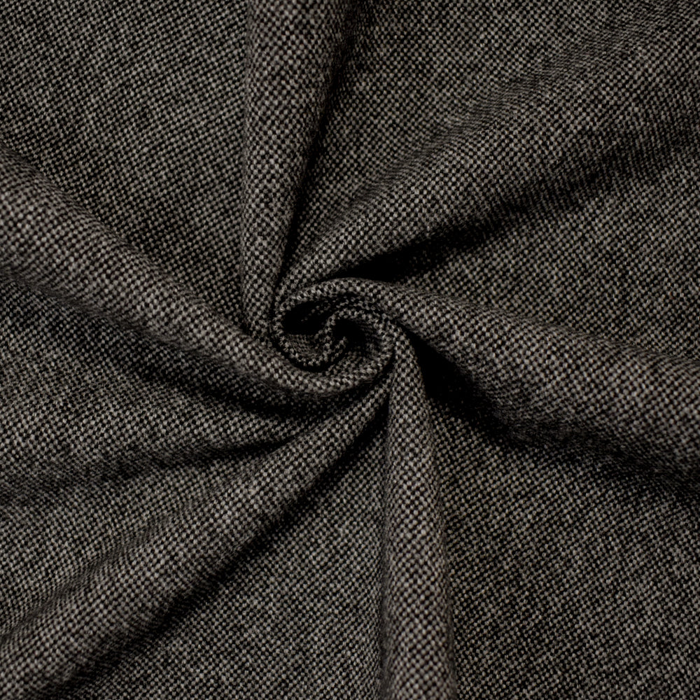 Black-Gray Poly-Wool Basket Light Brushed Woven Jacketing Fabric