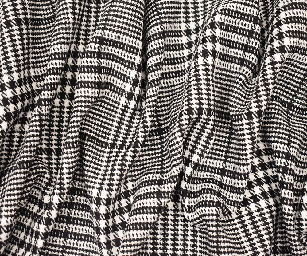 Black-White Melton Poly-Wool Glen Plaid Woven Jacketing Fabric