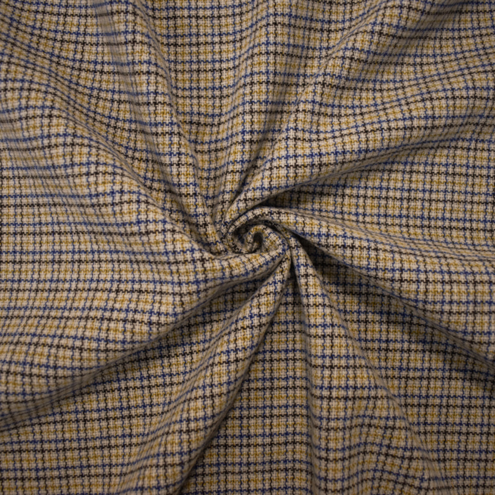-Gray-Blue-Multi Wool Blend Plaid Twill Jacketing Woven Fabric