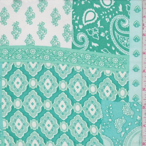 Emerald/Turquoise Deco Patchwork Georgette Chiffon Fabric