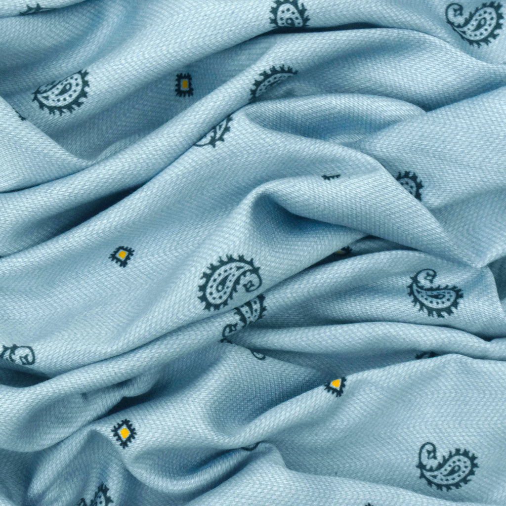 Light Blue-Multi Paisley Printed Cotton Twill Woven Shirting