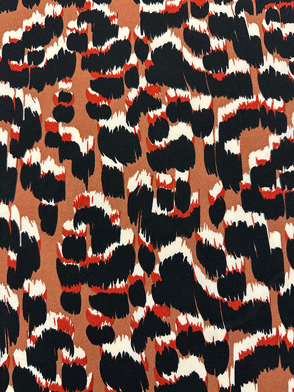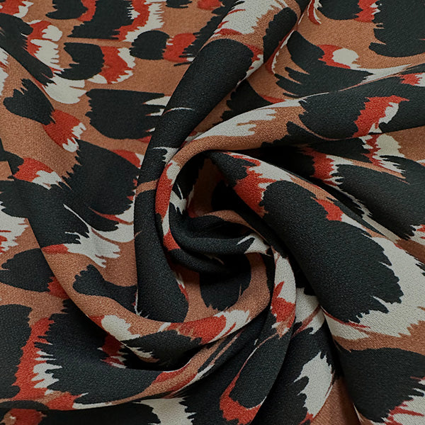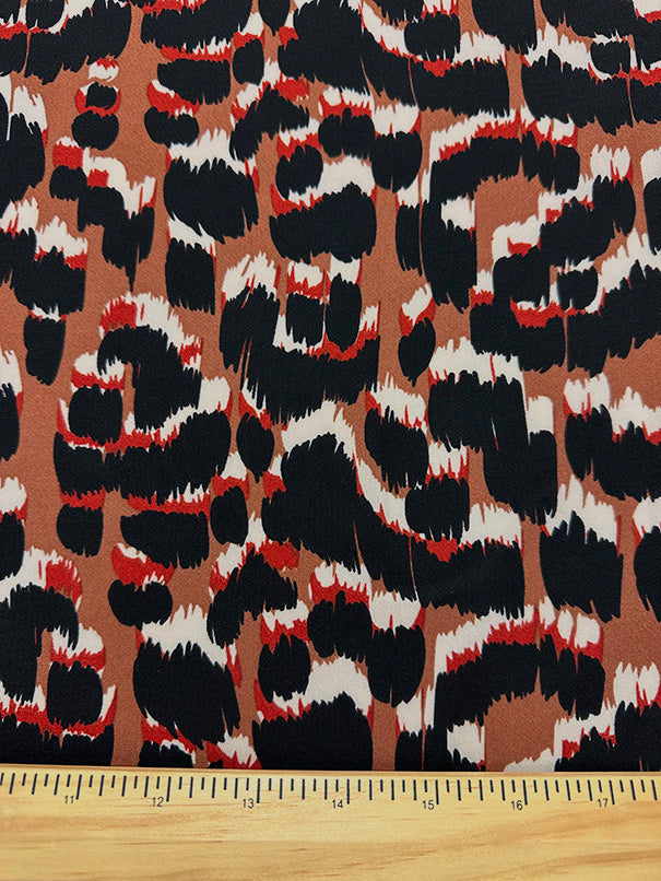 -Rust, Black, Red, & Off White Multi Print Poly Georgette Fabric
