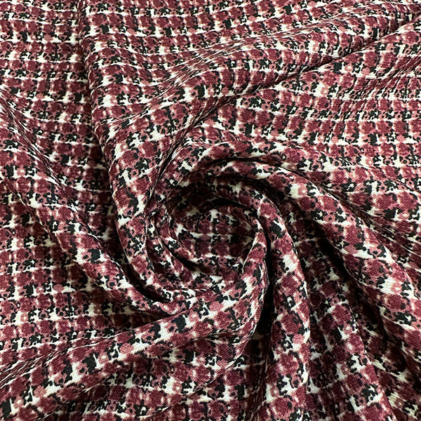 -Dark Red, Black, & White Print Poly Peachskin Fabric