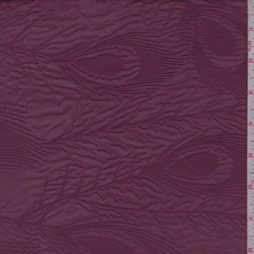 1 1/4 YD PC-Burgundy Peacock Feather Embossed Chiffon Fabric