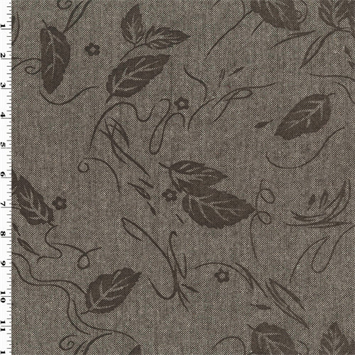 1 YD PC -Wool blend plain woven tweed with loop and wispy line and leaf over print