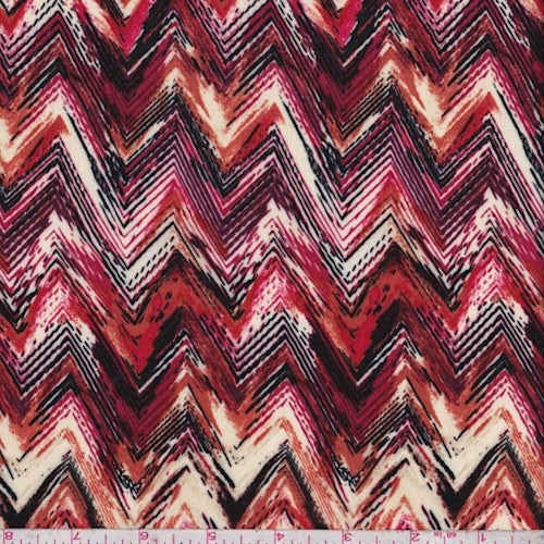 2 3/4 YD PC-Buff/Berry/Orange Flamestitch Rayon Challis Fabric