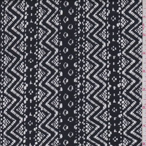 -Delicate cotton and nylon blend lace with decorative chevron and floral stripes