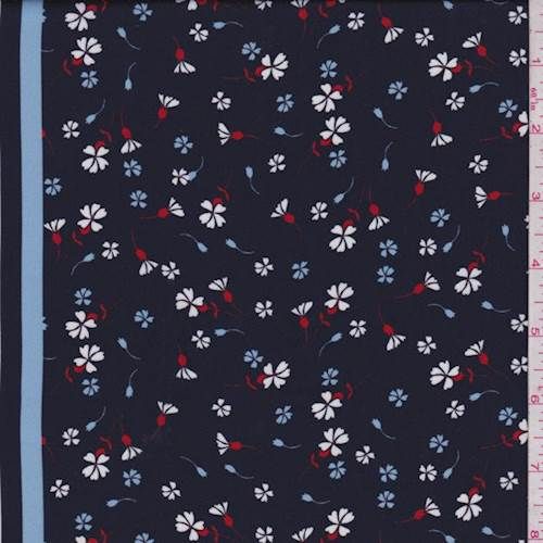 Dark Navy 2 PANELS Tossed Floral Polyester Charmeuse Fabric