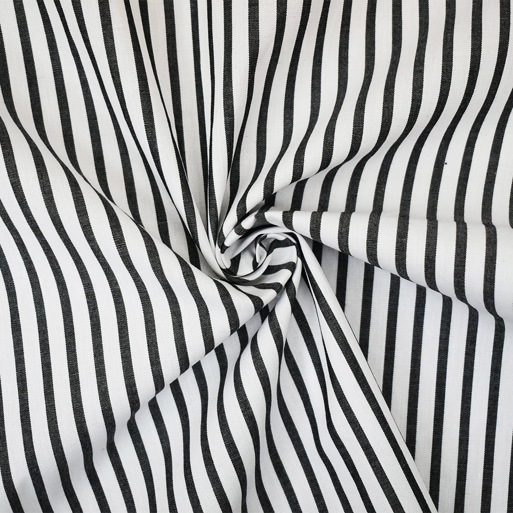 3 YD PC-Black-White Rayon Cotton Striped Shirting Woven Fabric
