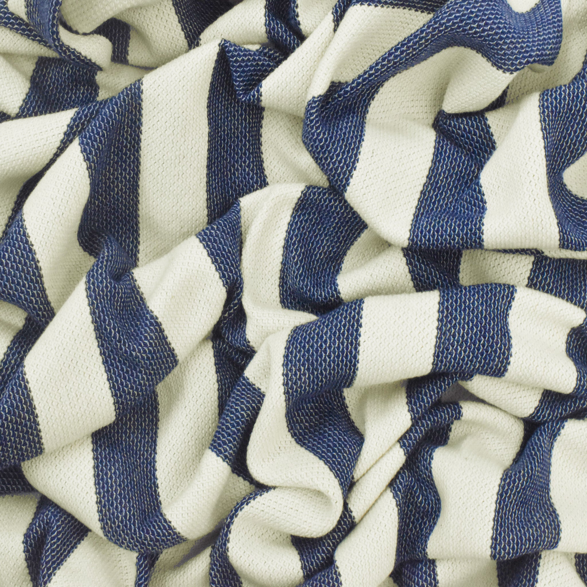 Ivory-Navy Blue Striped Pattern Pique Knit Fabric