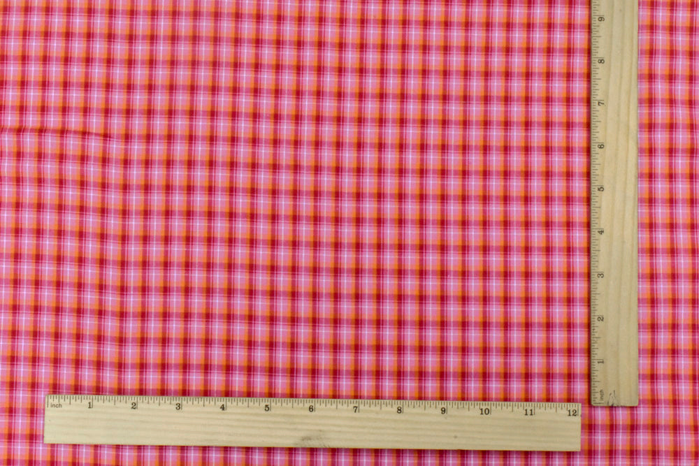 1 1/2 YD PC-Red-Pink-Multi Plaid Cotton Polyester Madras Woven Fabric